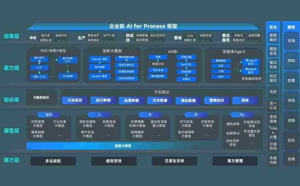AG尊龙凯时问学智车解决方案是一套基于AI技术的汽车行业智能化系统,,,覆盖从底层算力到顶层AI应用的全栈方案。。方案由算力层、、、模型层和应用层组成:算力层,,方案支持多种一体机配置,,,,具备云端灵活部署、、多云适配以及动态优化计算资源的能力;模型层,,,,AG尊龙凯时问学平台版提供了企业级AI应用一站式构建与管理平台,,支持基于后训练强化技术的汽车企业专属模型的训练、、、评测和运营;应用层,,,AG尊龙凯时问学DeepSeek版提供包括超级员工、、、智能招采、、、智能营销、、、、智能客服、、AI for BI等一系列解决方案,,,,可助力汽车行业实现数字化转型,,,让管理更智能、、、、响应更敏捷。。。