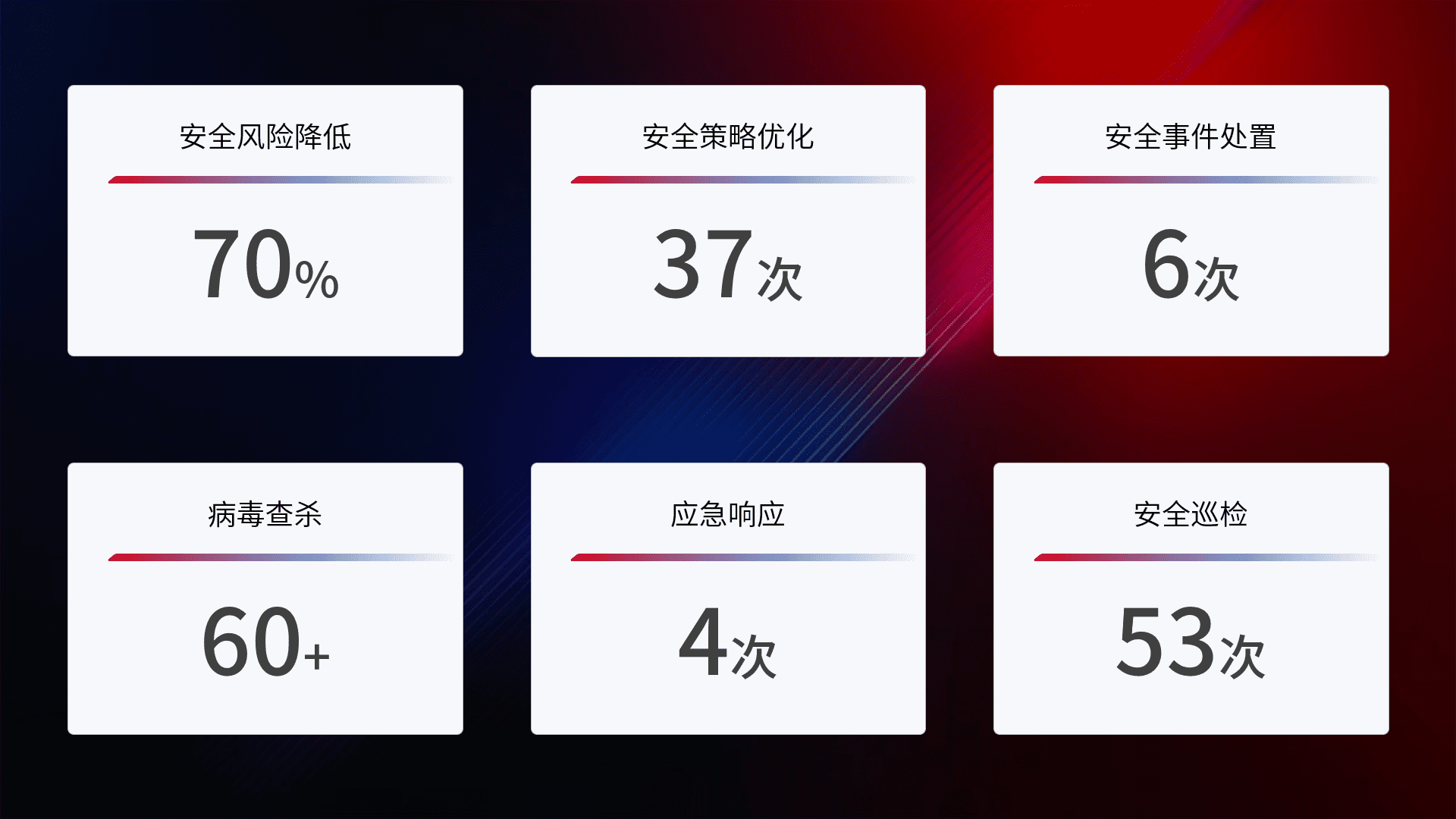 提供全面的安全事件报告体系,,,包括处置报告、、、、周报、、、、季度和年度总结,,,结合持续监控,,帮助客户深入了解网络安全状况。。。。